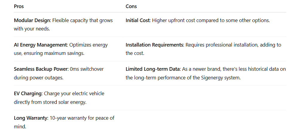 Pros and Cons of the Sigenergy Battery