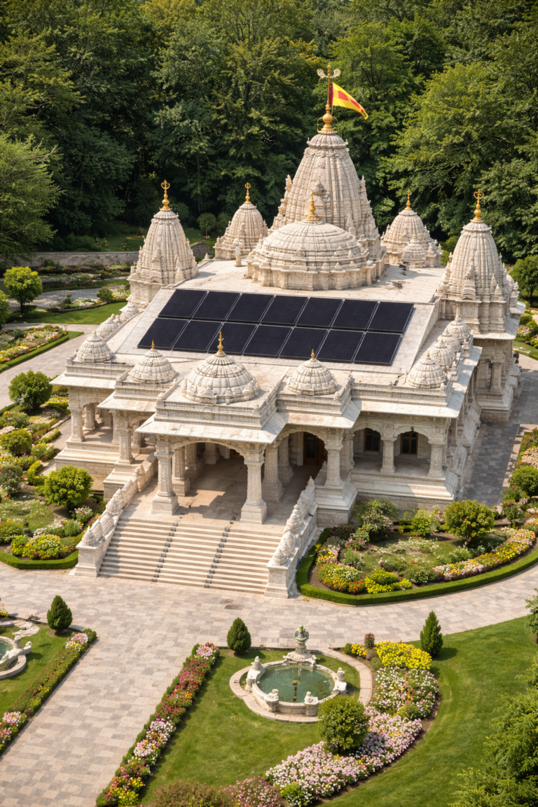Renewable energy is a natural fit for organisations guided by the principle of ahimsa — non-harm to living beings and the environment. By generating clean electricity from sunlight rather than fossil fuels, a Jain derasar can reduce its environmental footprint in a way that reflects the community’s core values.